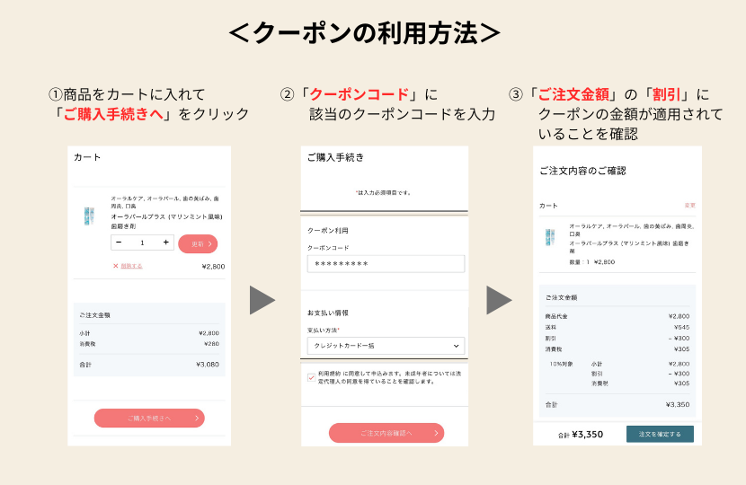 ご注文の際に、ぜひクーポンをご活用いただき、よりお得にお買い物をお楽しみください。